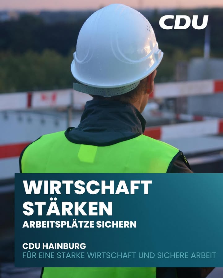 Wirtschaft stärken ? Arbeitsplätze sichernEine starke Wirtschaft schafft Zukunft.Aktive Wirtschaftsförderung und verlässliche Rahmenbedingungen sichern Betriebe, Ausbildung und Arbeitsplätze vor Ort. Wir fördern die Vernetzung von Unternehmerinnen und Unternehmern, stehen als Ansprechpartner bereit. Gemeinsam mit Gewerbeverein,Schulen, Betrieben und Investoren unterstützen wir die Ausbildungsplatzvermittlung und die Arbeitsplatzsuche vor Ort. Gleichzeitig wollen wir die Weiterentwicklung bestehender Gewerbeflächen vorantreiben und neue Möglichkeiten der Gewerbeansiedlung schaffen ?damit Hainburg wirtschaftlich stark bleibt und Zukunftschancen vor Ort entstehen.CDU Hainburg ? für eine starke Wirtschaft und sichere Arbeit